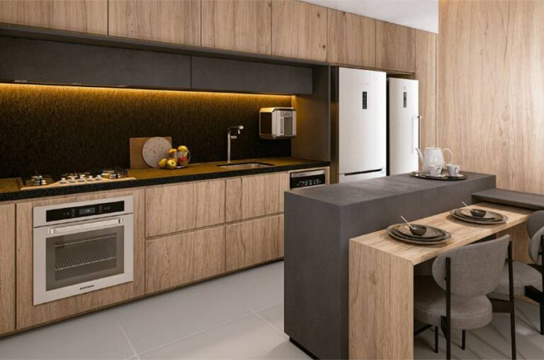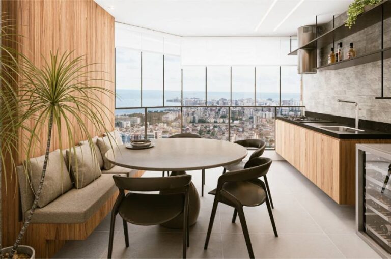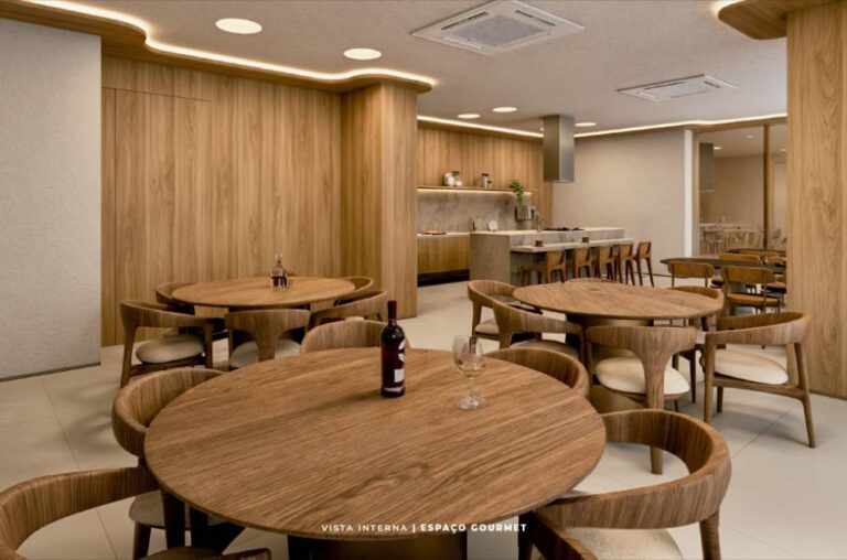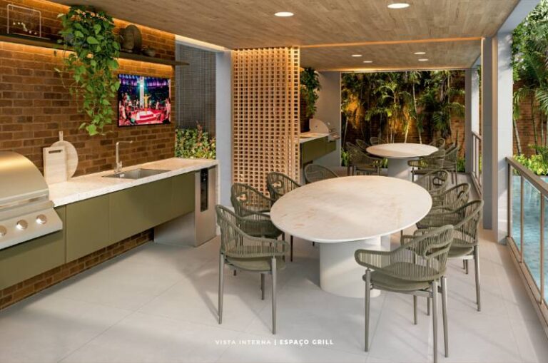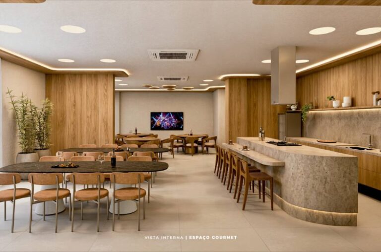 Espaço Gourmet e Salão de festas automatizados com climatização, sonorização, entretenimento, Iluminação especial e cozinha equipada.