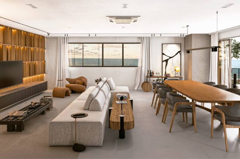 Paredes de drywall com lã de vidro, esquadrias com atenuação acústica e manta acústica no piso são elementos essenciais para um apartamento com acústica aprimorada. As paredes de drywall, ao serem preenchidas com lã de vidro, ajudam a absorver sons, reduzindo a transmissão de ruídos entre os ambientes.